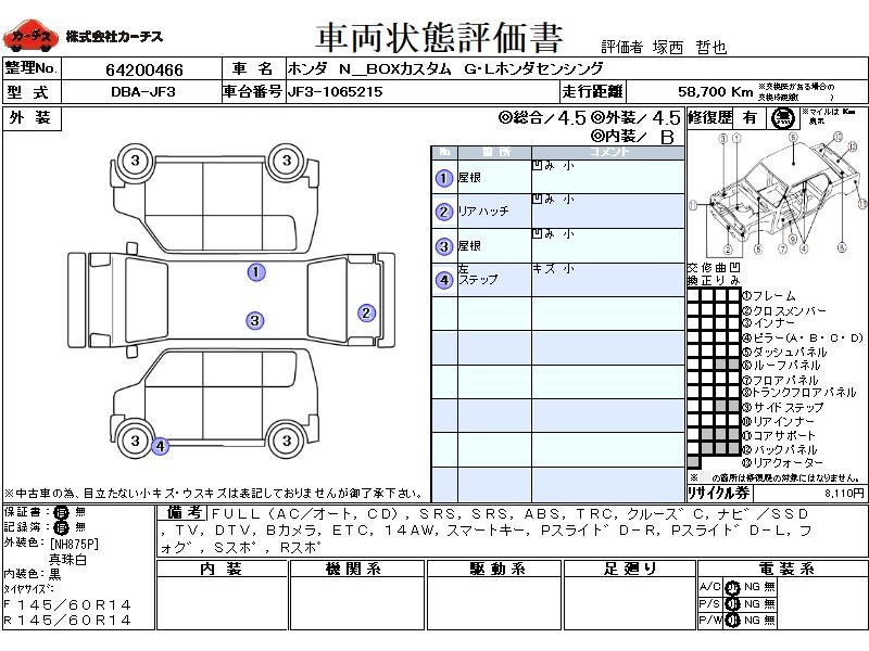 フル装備 / CD / エアバッグ / 助手席エアバッグ / ABS / トラクションコントロール / クルーズコントロール / カーナビゲーション(SSD) / テレビ(アナログ) / 地デジTV / バックカメラ / ETC / アルミホイール(14インチ) / スマートキー / パワースライドドア / フォグランプ / サイドスポイラー / リアスポイラー /