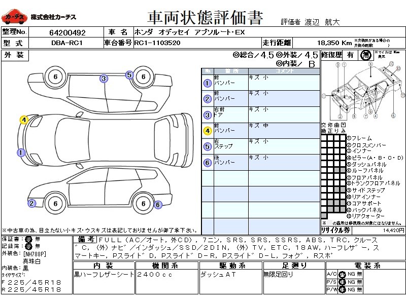 フル装備 / CD(社外) / 乗車定員(7人) / エアバッグ / 助手席エアバッグ / サイドエアバッグ / ABS / トラクションコントロール / クルーズコントロール / カーナビゲーション(社外)(インダッシュ,SSD,2DIN) / テレビ(社外) / 地デジTV(社外) / ETC / アルミホイール(18インチ) / ハーフレザーシート / スマートキー / パワースライドドア / フォグランプ / フロントスポイラー(社外) / サイドスポイラー(社外) / リアスポイラー / リアアンダースポイラー(社外) / マフラー(社外) / 足回り /