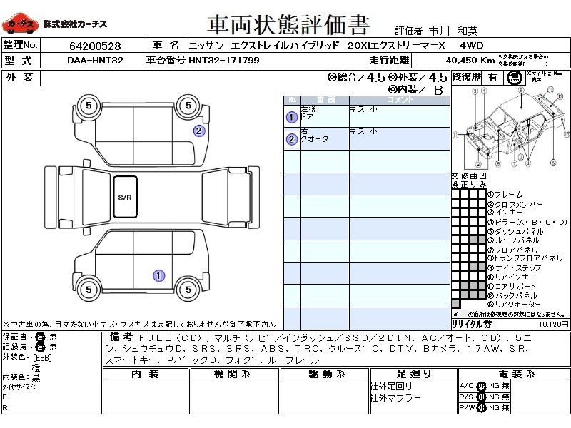 フル装備 / CD / マルチ(ナビ) / エアコン(オート) / 乗車定員(5人) / 集中ドアロック / エアバッグ / 助手席エアバッグ / ABS / トラクションコントロール / クルーズコントロール / 地デジTV / バックカメラ / アルミホイール(17インチ) / サンルーフ / スマートキー / パワーバックドア / フォグランプ / ルーフレール / マフラー(社外) / 足回り /
