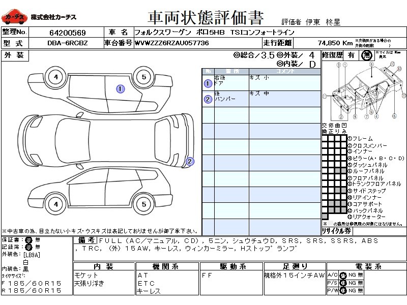 フル装備 / CD / 乗車定員(5人) / 集中ドアロック / エアバッグ / 助手席エアバッグ / サイドエアバッグ / ABS / トラクションコントロール / ETC(社外) / アルミホイール(社外)(15インチ) / キーレスエントリー / ウインカーミラー / ハイマウントストップランプ /