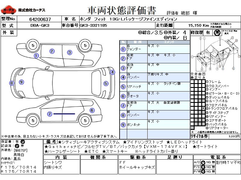 フル装備 / CD / 乗車定員(5人) / エアバッグ / 助手席エアバッグ / サイドエアバッグ / ABS / トラクションコントロール / クルーズコントロール / カーナビゲーション(インダッシュ,SSD,2DIN) / 地デジTV / バックカメラ / ETC / ハーフレザーシート / スマートキー / ウインカーミラー / ハイマウントストップランプ /