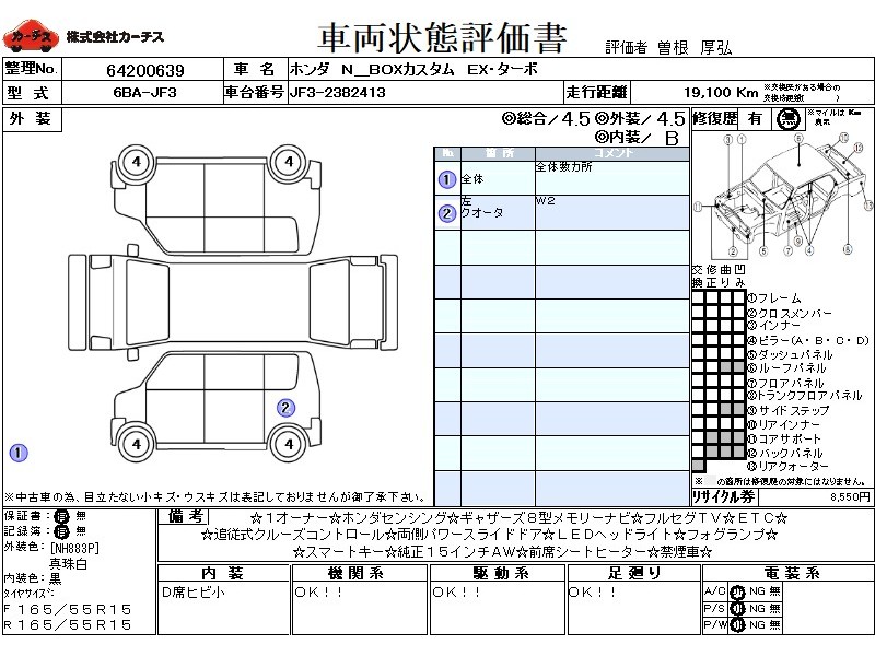 フル装備 / CD / マルチ(ナビ) / エアコン(オート) / テレビ(アナログ) / 乗車定員(4人) / 集中ドアロック / エアバッグ / 助手席エアバッグ / サイドエアバッグ / ABS / トラクションコントロール / クルーズコントロール / 地デジTV / バックカメラ / ETC / アルミホイール(15インチ) / ハーフレザーシート / スマートキー / ウインカーミラー / ハイマウントストップランプ / パワースライドドア / フォグランプ / サイドスポイラー / リアスポイラー /