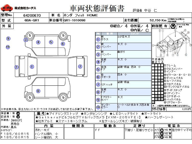 フル装備 / CD / 乗車定員(5人) / 集中ドアロック / エアバッグ / 助手席エアバッグ / サイドエアバッグ / ABS / トラクションコントロール / クルーズコントロール / カーナビゲーション(インダッシュ,SSD,2DIN) / 地デジTV / バックカメラ / アルミホイール(社外)(15インチ) / ハーフレザーシート / スマートキー / ウインカーミラー / ハイマウントストップランプ /