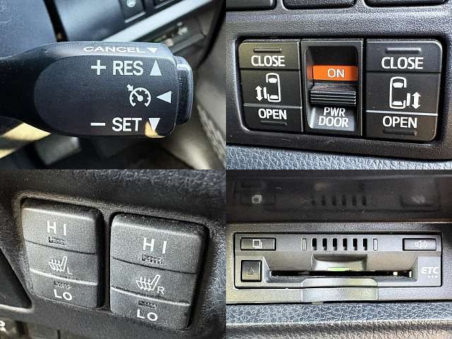 フル装備 / CD / 乗車定員(7人) / 集中ドアロック / エアバッグ / 助手席エアバッグ / ABS / トラクションコントロール / クルーズコントロール / カーナビゲーション(インダッシュ,SSD,2DIN) / 地デジTV / バックカメラ / ETC / アルミホイール(15インチ) / ハーフレザーシート / スマートキー / ウインカーミラー / ハイマウントストップランプ / パワースライドドア / フォグランプ / フロントスポイラー(社外) / リアスポイラー /