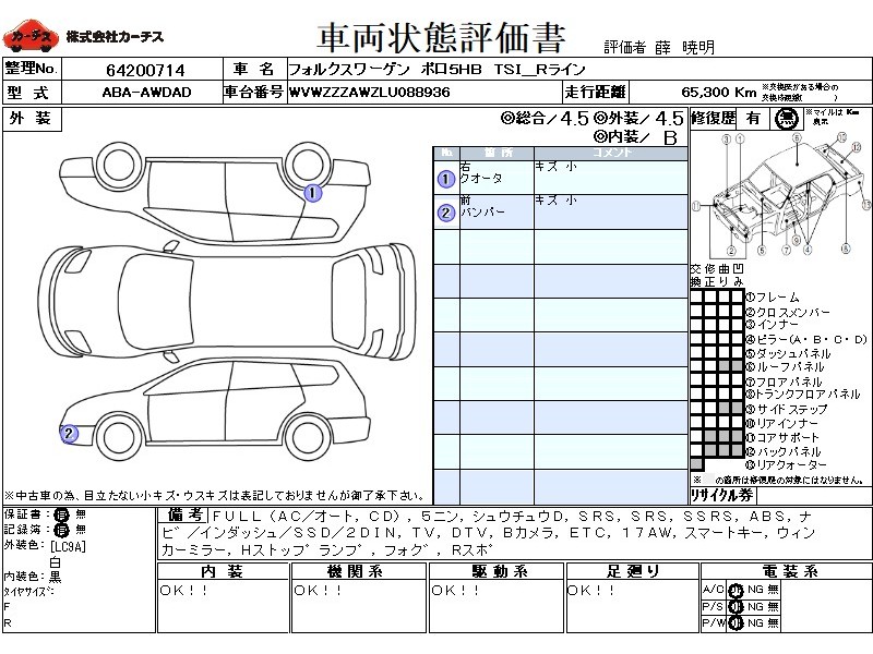 フル装備 / CD / 乗車定員(5人) / 集中ドアロック / エアバッグ / 助手席エアバッグ / サイドエアバッグ / ABS / カーナビゲーション(インダッシュ,SSD,2DIN) / テレビ(アナログ) / 地デジTV / バックカメラ / ETC / アルミホイール(17インチ) / スマートキー / ウインカーミラー / ハイマウントストップランプ / フォグランプ / リアスポイラー /