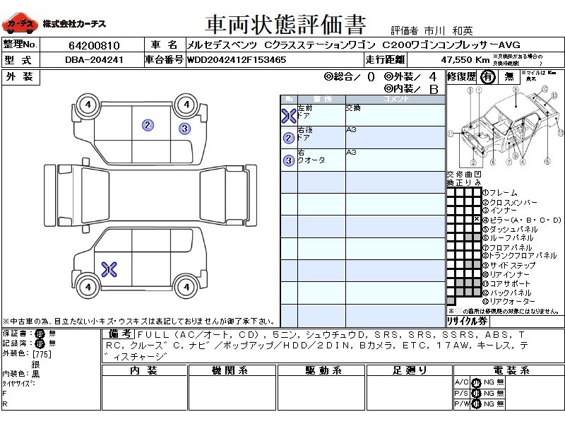 フル装備 / CD / 乗車定員(5人) / 集中ドアロック / エアバッグ / 助手席エアバッグ / サイドエアバッグ / ABS / トラクションコントロール / クルーズコントロール / カーナビゲーション(ポップアップ,HDD,2DIN) / バックカメラ / ETC / アルミホイール(17インチ) / キーレスエントリー / ディスチャージ /