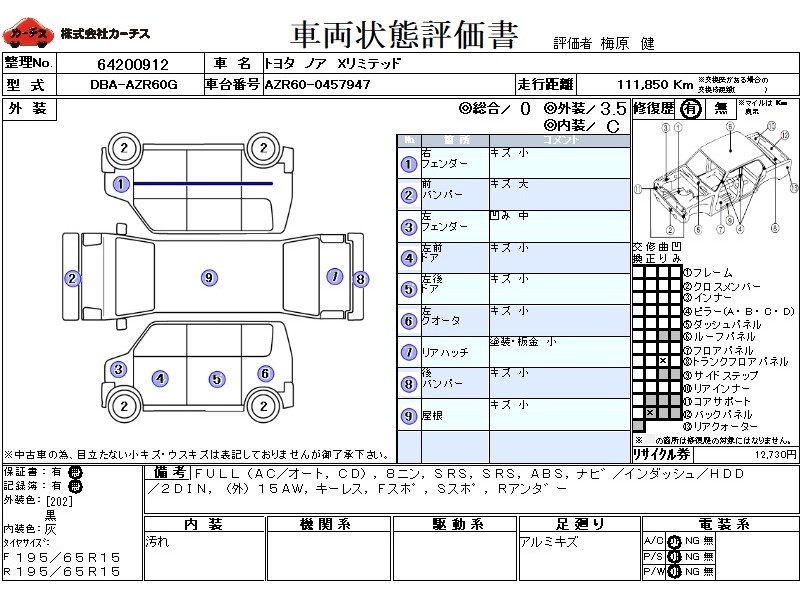 FULL(AC/オート,CD),8ニン,SRS,PSSRS,ABS,ナヒ゛/インダッシュ/HDD/2DIN,(外)ETC,(外)15AW,キーレス,Fスホ゜,Sスホ゜,Rアンタ゛ー