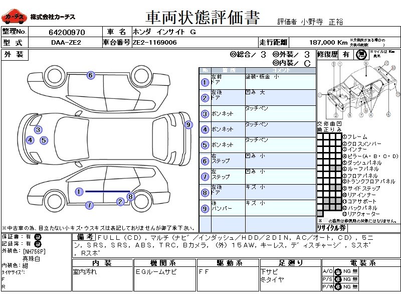 フル装備 / CD / マルチ(ナビ) / エアコン(オート) / 乗車定員(5人) / エアバッグ / 助手席エアバッグ / ABS / トラクションコントロール / バックカメラ / アルミホイール(社外)(15インチ) / キーレスエントリー / ディスチャージ / サイドスポイラー / リアスポイラー /