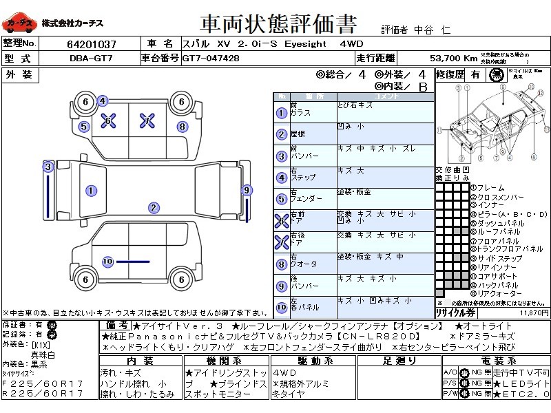 4WD!アイドリングストップ!アイサイト3!ブラインドスポットモニター!純正ナビ&フルセグTV&DVD&BT&バックカメラ!ルーフレール&シャークフィンアンテナ!LEDヘッドライト!オートライト!ETC2.0!パドルシフト!