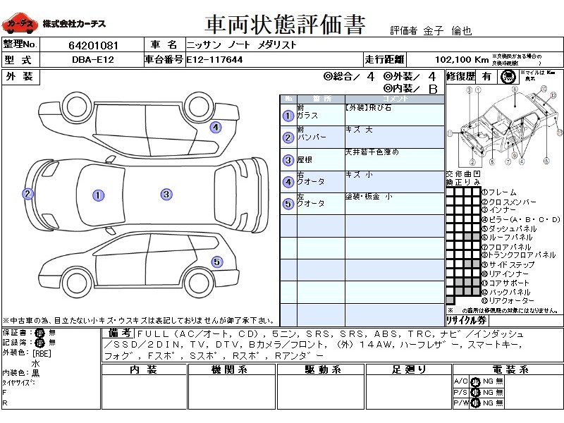 | 外装評価 | 4 |