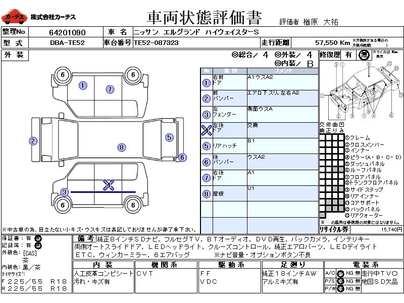 フル装備 / CD / 乗車定員(7人) / エアバッグ / 助手席エアバッグ / サイドエアバッグ / ABS / トラクションコントロール / クルーズコントロール / カーナビゲーション(インダッシュ,2DIN) / 地デジTV / バックカメラ / ETC / アルミホイール(18インチ) / スマートキー / ウインカーミラー / パワースライドドア / フォグランプ / フロントスポイラー / サイドスポイラー / リアスポイラー /