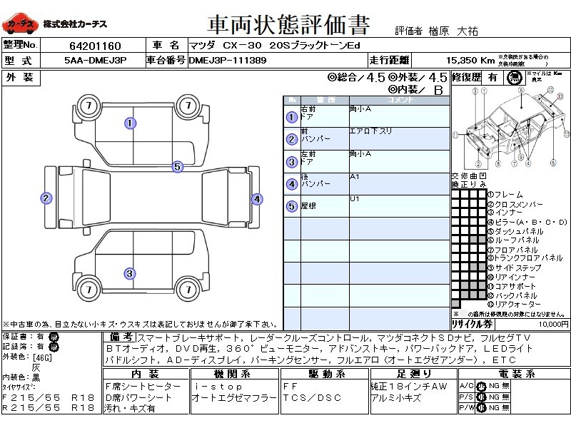 スマートブレーキサポート レーダークルーズコントロール マツダコネクトSDナビ フルセグTV BTオーディオ DVD再生 360°ビューモニター アドバンストキー パワーバックドア LEDヘッドライト パドルシフト 純正18インチアルミ フルエアロ(オートエグゼアンダー) F席シートヒーター BSM AD-ディスプレイ 6エアバッグ 禁煙車