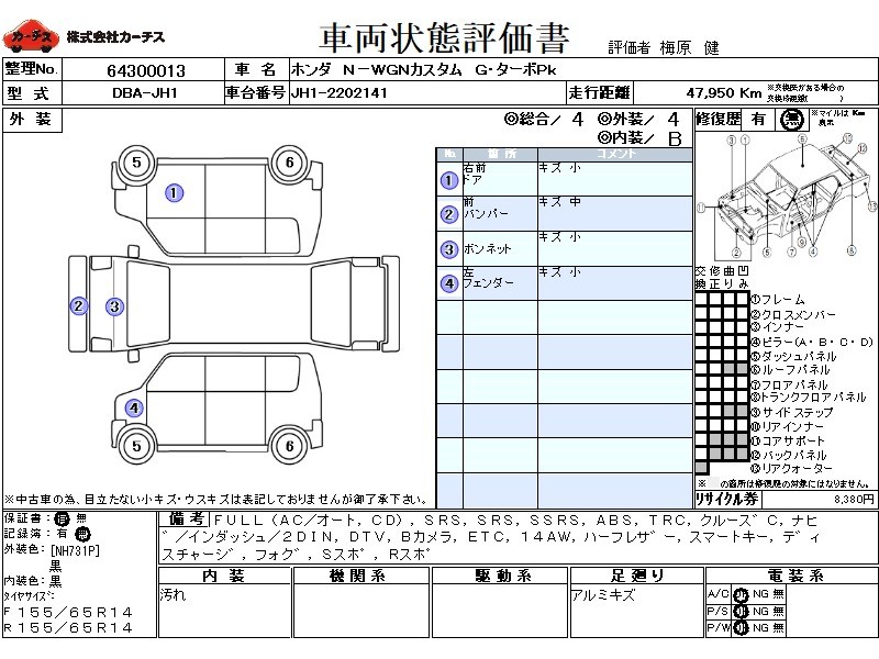 FULL(AC/オート,CD),SRS,PSSRS,SSRS,ABS,TRC,クルース゛C,ナヒ゛/インダッシュ/2DIN,DTV,Bカメラ,ETC,14AW,ハーフレサ゛ー,スマートキー,テ゛ィスチャーシ゛,フォク゛,Sスホ゜,Rスホ゜