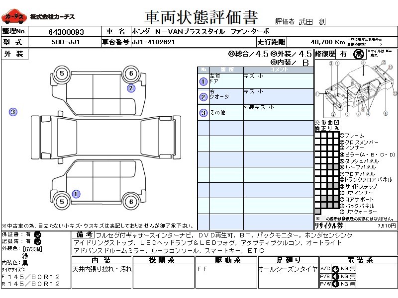 フル装備 / CD / 乗車定員(4人) / エアバッグ / 助手席エアバッグ / ABS / トラクションコントロール / クルーズコントロール / カーナビゲーション(SSD) / テレビ(アナログ) / 地デジTV / バックカメラ / ETC / スマートキー / ハイマウントストップランプ / フォグランプ /