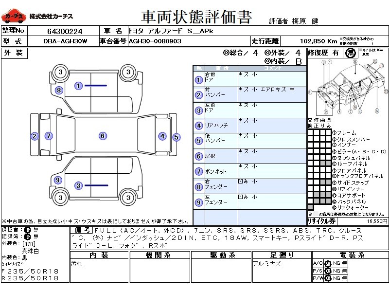 FULL(AC/オート,外CD),7ニン,SRS,PSSRS,SSRS,ABS,TRC,クルース゛C,(外)ナヒ゛/インダッシュ/2DIN,(外)DTV,(外)フリッフ゜タ゛ウンM,(外)Bカメラ,ETC,18AW,スマートキー,Pスライ