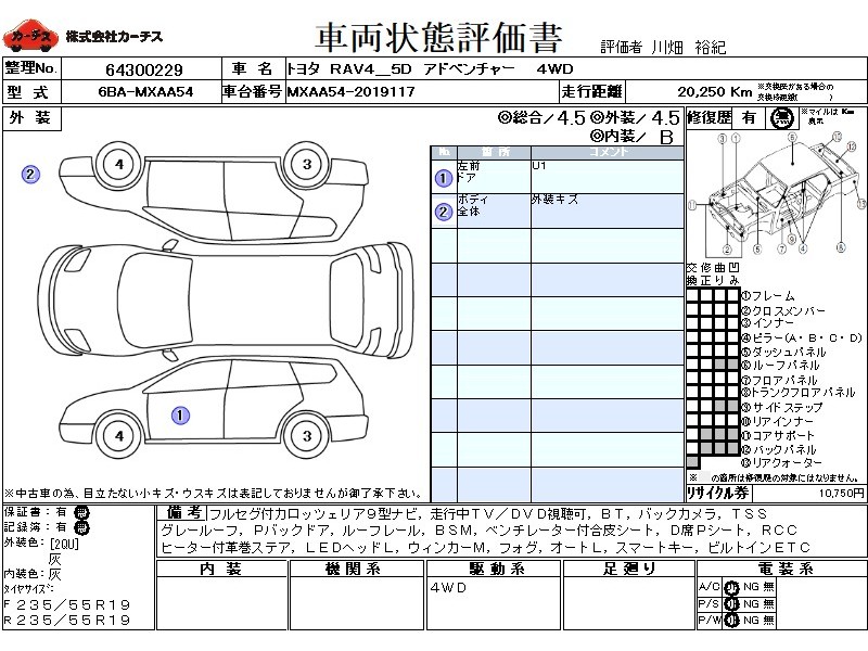 フル装備 / CD(社外) / 乗車定員(5人) / エアバッグ / 助手席エアバッグ / サイドエアバッグ / ABS / クルーズコントロール / カーナビゲーション(社外)(SSD) / テレビ(社外) / 地デジTV(社外) / ETC / アルミホイール(19インチ) / スマートキー / ウインカーミラー / ハイマウントストップランプ / パワーバックドア / フォグランプ / ルーフレール / リアスポイラー /