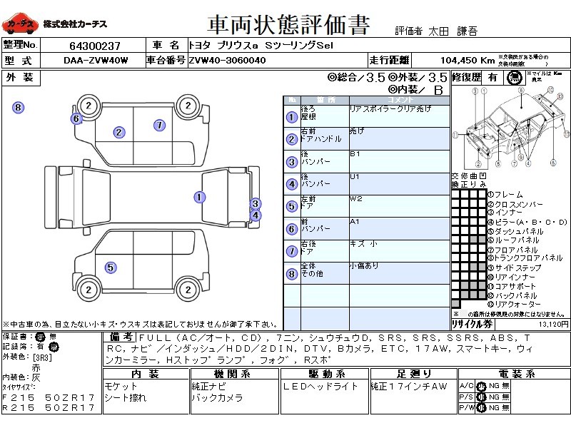 | 外装評価 | 3.5 |