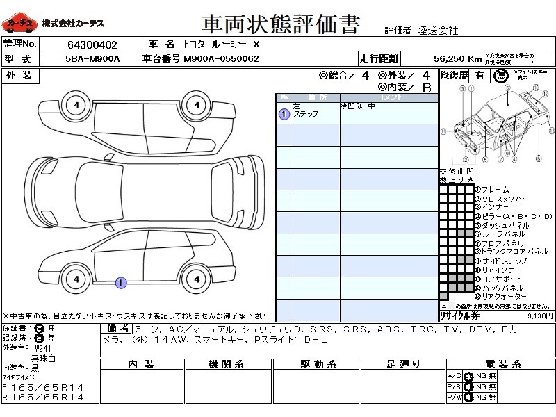 乗車定員(5人) / エアコン(マニュアル) / パワーステアリング / パワーウィンドウ / 集中ドアロック / エアバッグ / 助手席エアバッグ / ABS / トラクションコントロール / テレビ(アナログ) / 地デジTV / バックカメラ / ETC(社外) / アルミホイール(社外)(14インチ) / スマートキー / パワースライドドア /