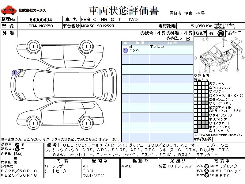 フル装備 / CD / マルチ(ナビ) / エアコン(オート) / 乗車定員(5人) / 集中ドアロック / エアバッグ / 助手席エアバッグ / サイドエアバッグ / ABS / トラクションコントロール / クルーズコントロール / 地デジTV / バックカメラ / ETC / アルミホイール(18インチ) / ハーフレザーシート / スマートキー / フォグランプ / フロントスポイラー / サイドスポイラー / リアスポイラー / リアアンダースポイラー /