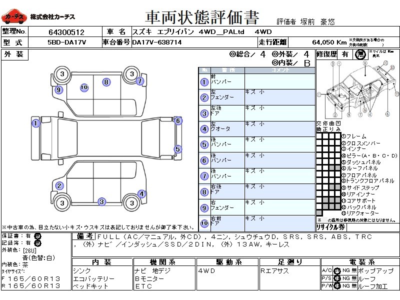 フル装備 / CD(社外) / 乗車定員(4人) / 集中ドアロック / エアバッグ / 助手席エアバッグ / ABS / トラクションコントロール / カーナビゲーション(社外)(インダッシュ,SSD,2DIN) / ETC(社外) / アルミホイール(社外)(13インチ) / キーレスエントリー / 足回り /