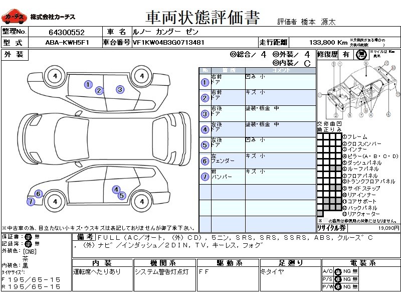 | 外装評価 | 4 |