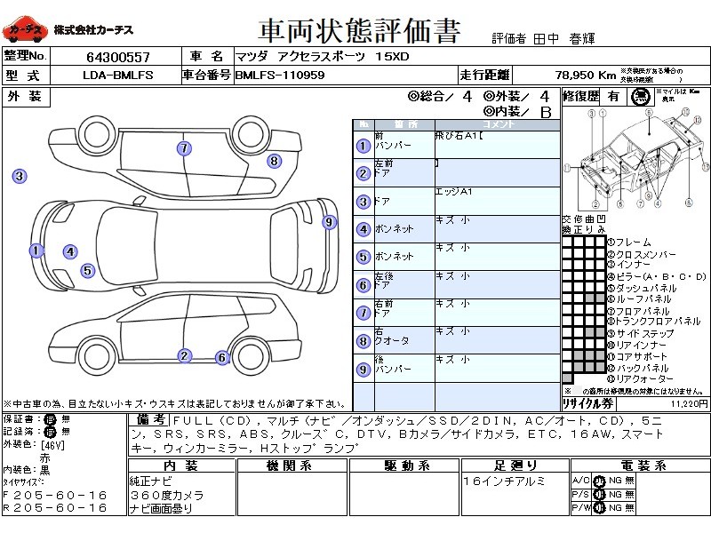 FULL(CD),マルチ(ナヒ゛/オンダッシュ/SSD/2DIN,AC/オート,CD),5ニン,SRS,PSSRS,ABS,クルース゛C,DTV,Bカメラ/サイドカメラ,ETC,16AW,スマートキー,ウィンカーミラー,Hストッフ゜ランフ