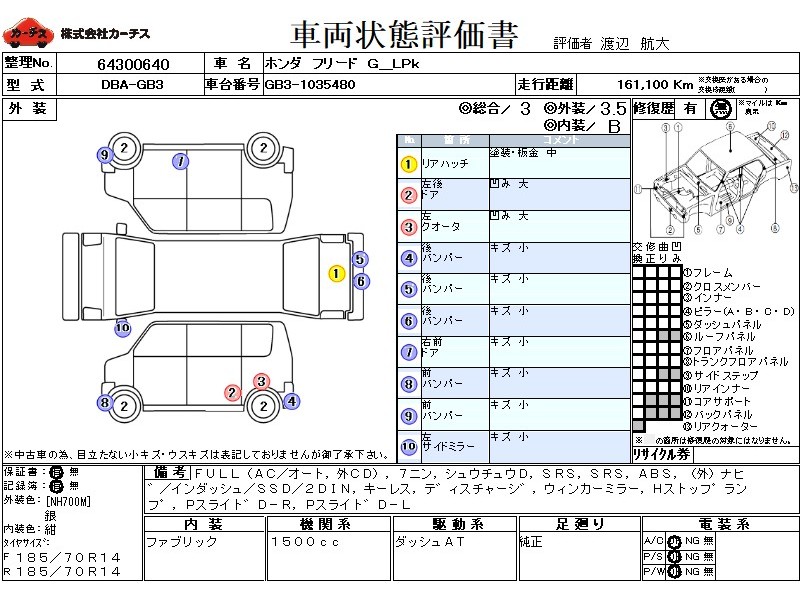 フル装備 / CD(社外) / 乗車定員(7人) / 集中ドアロック / エアバッグ / 助手席エアバッグ / ABS / カーナビゲーション(社外)(インダッシュ,SSD,2DIN) / ETC(社外) / キーレスエントリー / ディスチャージ / ウインカーミラー / ハイマウントストップランプ / パワースライドドア /