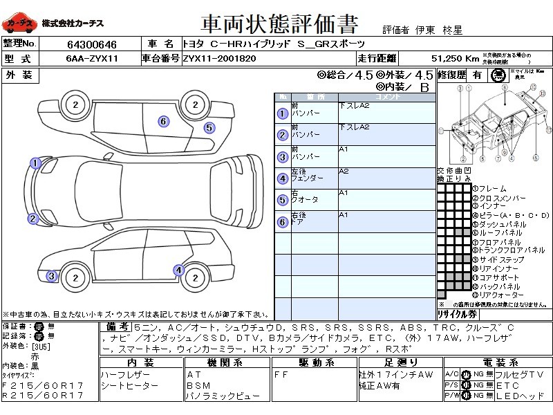 乗車定員(5人) / エアコン(オート) / パワーステアリング / パワーウィンドウ / 集中ドアロック / エアバッグ / 助手席エアバッグ / サイドエアバッグ / ABS / トラクションコントロール / クルーズコントロール / カーナビゲーション(オンダッシュ,SSD) / 地デジTV / バックカメラ(サイドカメラ) / ETC / アルミホイール(社外)(17インチ) / ハーフレザーシート / スマートキー / ウインカーミラー / ハイマウントストップランプ / フォグランプ / リアスポイラー /
