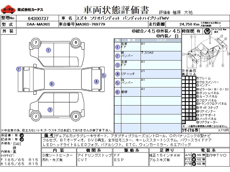 フル装備 / CD / エアバッグ / 助手席エアバッグ / サイドエアバッグ / ABS / トラクションコントロール / クルーズコントロール / カーナビゲーション(インダッシュ,2DIN) / 地デジTV / バックカメラ(フロント) / ETC / アルミホイール(15インチ) / スマートキー / ウインカーミラー / パワースライドドア / フォグランプ / サイドスポイラー / リアスポイラー /