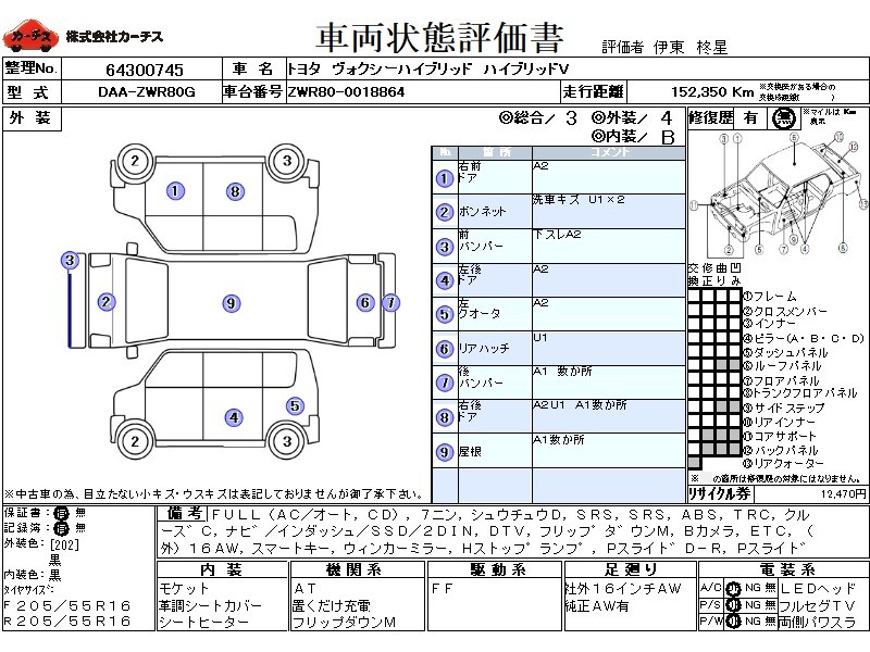 フル装備 / CD / 乗車定員(7人) / 集中ドアロック / エアバッグ / 助手席エアバッグ / ABS / トラクションコントロール / クルーズコントロール / カーナビゲーション(インダッシュ,SSD,2DIN) / 地デジTV / フリップダウンモニタ / バックカメラ / ETC / アルミホイール(社外)(16インチ) / スマートキー / ウインカーミラー / ハイマウントストップランプ / パワースライドドア / フォグランプ / リアスポイラー /