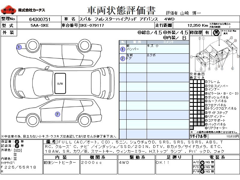 フル装備 / CD / 乗車定員(5人) / 集中ドアロック / エアバッグ / 助手席エアバッグ / サイドエアバッグ / ABS / トラクションコントロール / クルーズコントロール / カーナビゲーション(インダッシュ,SSD,2DIN) / 地デジTV / バックカメラ(サイドカメラ) / ETC / アルミホイール(18インチ) / サンルーフ / 革シート(茶) / スマートキー / ウインカーミラー / ハイマウントストップランプ / パワーバックドア / フォグランプ / ルーフレール / リアスポイラー /