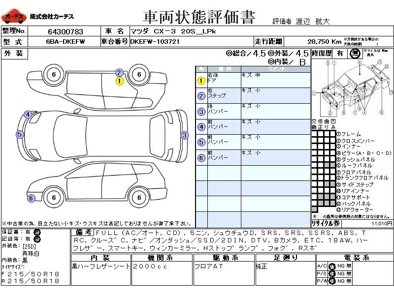 フル装備 / CD / 乗車定員(5人) / 集中ドアロック / エアバッグ / 助手席エアバッグ / サイドエアバッグ / ABS / トラクションコントロール / クルーズコントロール / カーナビゲーション(オンダッシュ,SSD,2DIN) / 地デジTV / バックカメラ / ETC / アルミホイール(18インチ) / ハーフレザーシート / スマートキー / ウインカーミラー / ハイマウントストップランプ / フォグランプ / リアスポイラー /