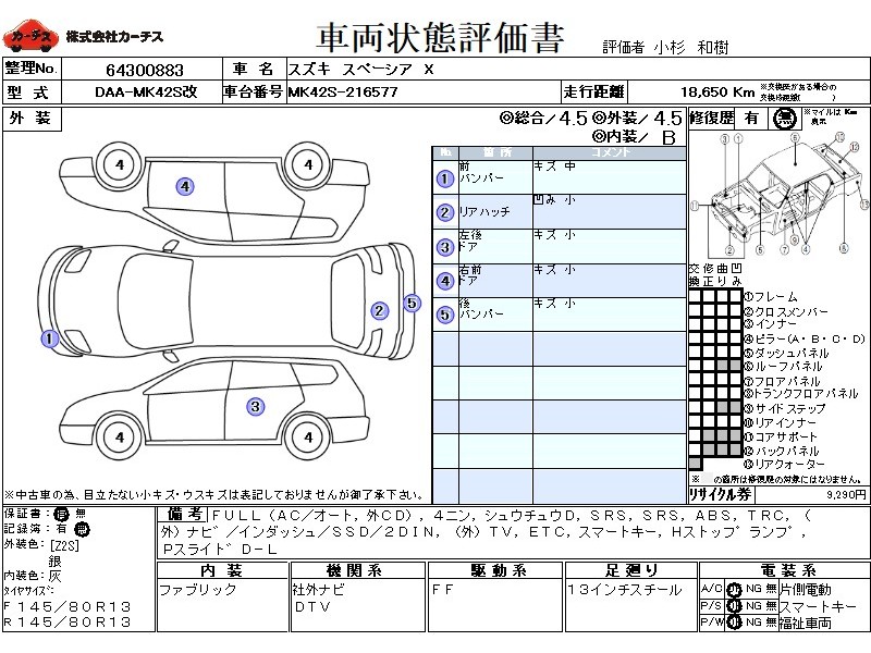 フル装備 / CD(社外) / 乗車定員(4人) / 集中ドアロック / エアバッグ / 助手席エアバッグ / ABS / トラクションコントロール / カーナビゲーション(社外)(インダッシュ,SSD,2DIN) / テレビ(社外) / 地デジTV(社外) / ETC / スマートキー / ハイマウントストップランプ / パワースライドドア /