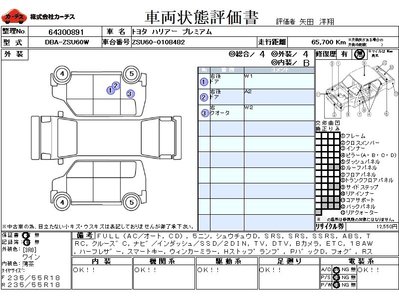 フル装備 / CD / 乗車定員(5人) / 集中ドアロック / エアバッグ / 助手席エアバッグ / サイドエアバッグ / ABS / トラクションコントロール / クルーズコントロール / カーナビゲーション(インダッシュ,SSD,2DIN) / テレビ(アナログ) / 地デジTV / バックカメラ / ETC / アルミホイール(18インチ) / ハーフレザーシート / スマートキー / ウインカーミラー / ハイマウントストップランプ / パワーバックドア / フォグランプ / リアスポイラー /