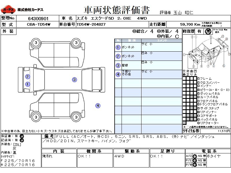 | 外装評価 | 4 |