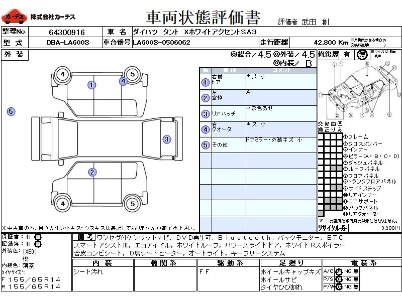 フル装備 / CD(社外) / 乗車定員(4人) / エアバッグ / 助手席エアバッグ / ABS / カーナビゲーション(社外)(SSD) / テレビ(社外) / 地デジTV(社外) / ETC(社外) / スマートキー / ハイマウントストップランプ / パワースライドドア / リアスポイラー /