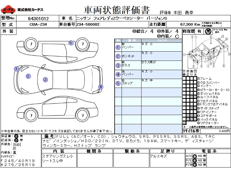 フル装備 / CD / 集中ドアロック / エアバッグ / 助手席エアバッグ / サイドエアバッグ / ABS / トラクションコントロール / カーナビゲーション(インダッシュ,HDD,2DIN) / 地デジTV / バックカメラ / アルミホイール(19インチ) / スマートキー / ディスチャージ / ウインカーミラー / ハイマウントストップランプ /
