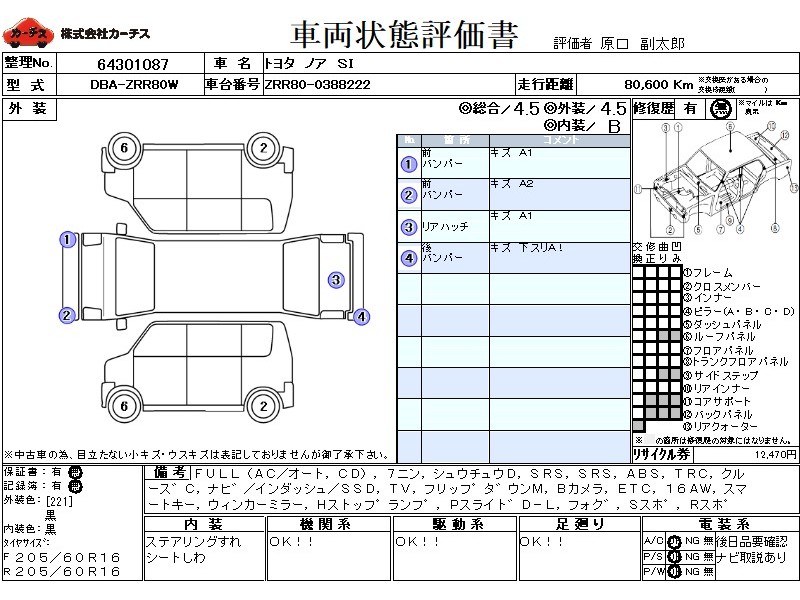 フル装備 / CD / 乗車定員(7人) / 集中ドアロック / エアバッグ / 助手席エアバッグ / ABS / トラクションコントロール / クルーズコントロール / カーナビゲーション(インダッシュ,SSD) / テレビ(アナログ) / フリップダウンモニタ / バックカメラ / ETC / アルミホイール(16インチ) / スマートキー / ウインカーミラー / ハイマウントストップランプ / パワースライドドア / フォグランプ / サイドスポイラー / リアスポイラー /