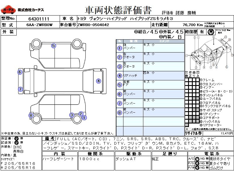フル装備 / CD / 乗車定員(7人) / エアバッグ / 助手席エアバッグ / ABS / トラクションコントロール / クルーズコントロール / カーナビゲーション(インダッシュ,SSD,2DIN) / テレビ(アナログ) / 地デジTV / フリップダウンモニタ / バックカメラ / ETC / アルミホイール(16インチ) / ハーフレザーシート / スマートキー / パワースライドドア / フォグランプ / サイドスポイラー / リアスポイラー /