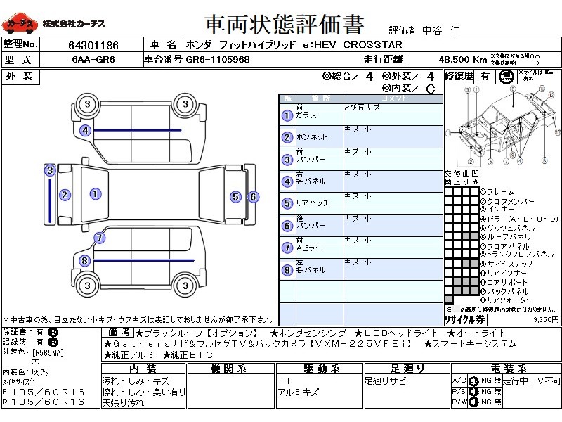 フル装備 / CD / 乗車定員(5人) / 集中ドアロック / エアバッグ / 助手席エアバッグ / サイドエアバッグ / ABS / トラクションコントロール / クルーズコントロール / カーナビゲーション(インダッシュ,SSD,2DIN) / 地デジTV / バックカメラ / ETC / アルミホイール(16インチ) / ウインカーミラー / ハイマウントストップランプ /