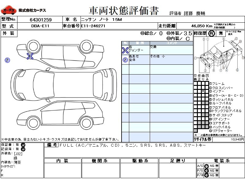 | 外装評価 | 3.5 |