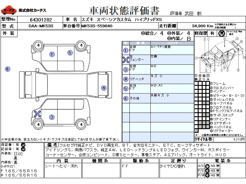 フル装備 / CD / 乗車定員(4人) / エアバッグ / 助手席エアバッグ / サイドエアバッグ / ABS / トラクションコントロール / カーナビゲーション(SSD) / テレビ(アナログ) / 地デジTV / バックカメラ / ETC(社外) / アルミホイール(15インチ) / スマートキー / ウインカーミラー / ハイマウントストップランプ / パワースライドドア / フォグランプ / サイドスポイラー / リアスポイラー /