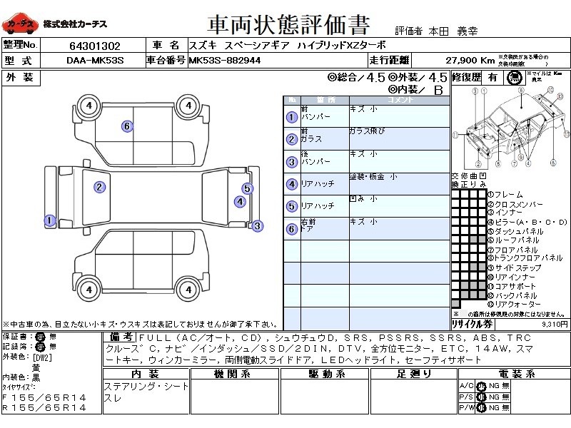 フル装備 / CD / 集中ドアロック / エアバッグ / 助手席エアバッグ / サイドエアバッグ / ABS / トラクションコントロール / クルーズコントロール / カーナビゲーション(インダッシュ,SSD,2DIN) / 地デジTV / バックカメラ(フロント) / ETC / アルミホイール(14インチ) / スマートキー / ウインカーミラー / ハイマウントストップランプ / パワースライドドア / フォグランプ / ルーフレール /