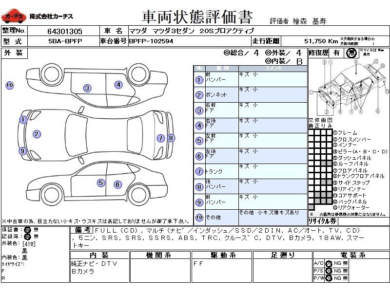 フル装備 / CD / マルチ(ナビ) / エアコン(オート) / テレビ(アナログ) / 乗車定員(5人) / エアバッグ / 助手席エアバッグ / サイドエアバッグ / ABS / トラクションコントロール / クルーズコントロール / 地デジTV / バックカメラ / アルミホイール(18インチ) / スマートキー /