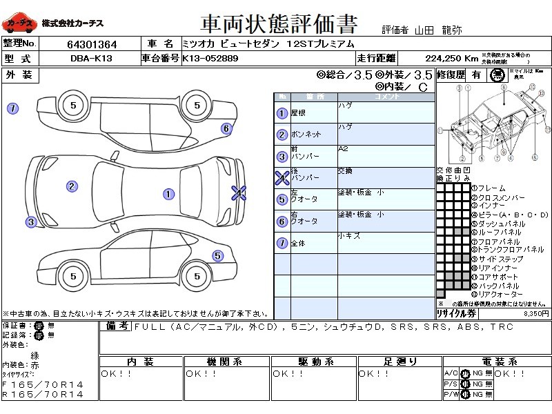 フル装備 / CD(社外) / 乗車定員(5人) / 集中ドアロック / エアバッグ / 助手席エアバッグ / ABS / トラクションコントロール / ETC(社外) /