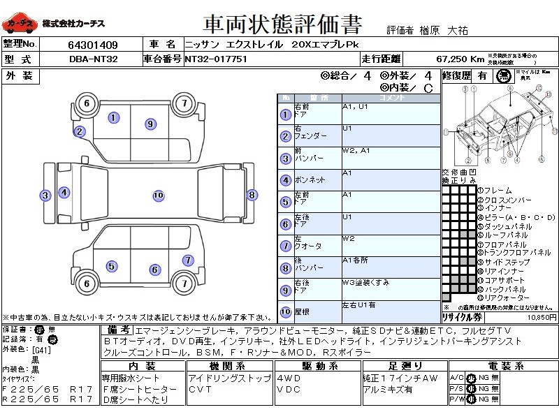 フル装備 / CD / エアバッグ / 助手席エアバッグ / ABS / トラクションコントロール / クルーズコントロール / カーナビゲーション(インダッシュ,2DIN) / 地デジTV / バックカメラ(フロント) / ETC / アルミホイール(17インチ) / スマートキー / ウインカーミラー / リアスポイラー /