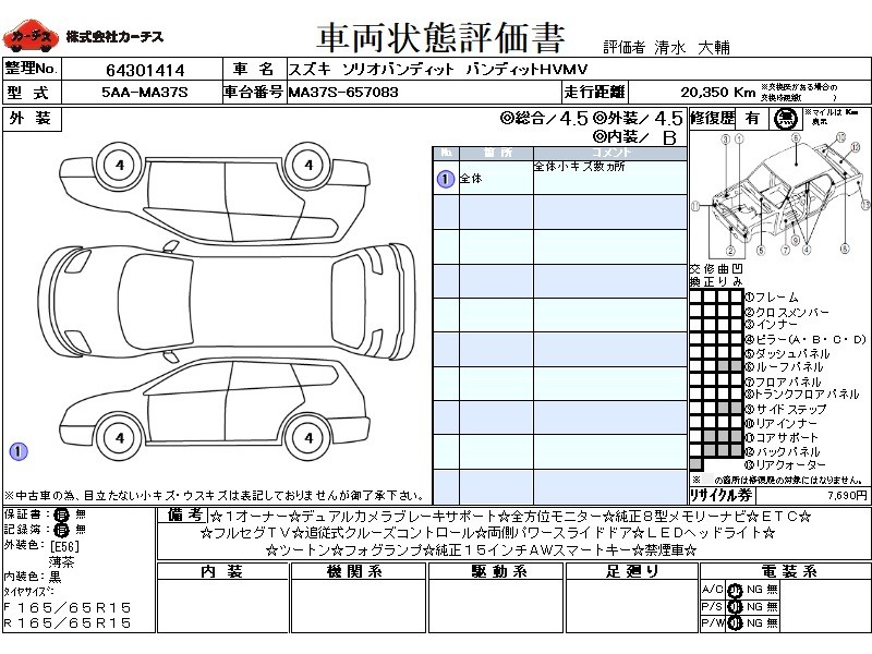 フル装備 / CD / マルチ(ナビ) / エアコン(オート) / テレビ(アナログ) / 乗車定員(5人) / 集中ドアロック / エアバッグ / 助手席エアバッグ / サイドエアバッグ / ABS / トラクションコントロール / クルーズコントロール / 地デジTV / バックカメラ(サイドカメラ) / ETC / アルミホイール(15インチ) / スマートキー / ウインカーミラー / ハイマウントストップランプ / パワースライドドア / フォグランプ / サイドスポイラー / リアスポイラー /