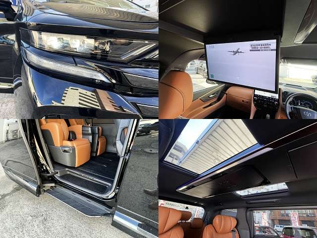 乗車定員(7人) / エアコン(オート) / パワーステアリング / パワーウィンドウ / エアバッグ / 助手席エアバッグ / サイドエアバッグ / ABS / トラクションコントロール / クルーズコントロール / カーナビゲーション(オンダッシュ,SSD) / テレビ(アナログ) / 地デジTV / フリップダウンモニタ / バックカメラ(サイドカメラ) / ETC / アルミホイール(19インチ) / サンルーフ / 革シート(茶) / スマートキー / パワースライドドア / パワーバックドア / フォグランプ / フロントスポイラー / サイドスポイラー / リアスポイラー / リアアンダースポイラー /