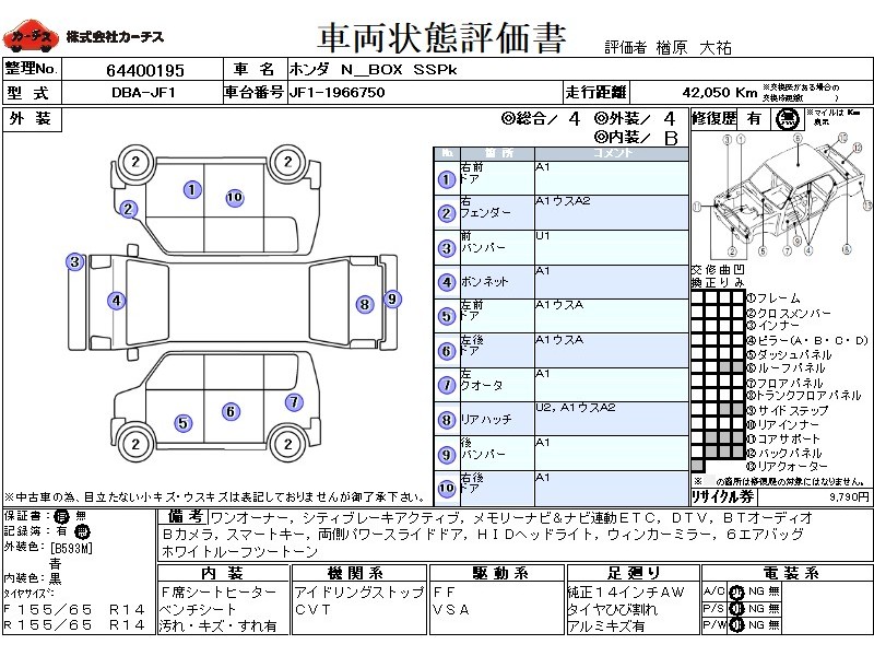 フル装備 / CD / エアバッグ / 助手席エアバッグ / サイドエアバッグ / ABS / トラクションコントロール / カーナビゲーション(インダッシュ,2DIN) / 地デジTV / バックカメラ / ETC / アルミホイール(14インチ) / スマートキー / ディスチャージ / ウインカーミラー / パワースライドドア /