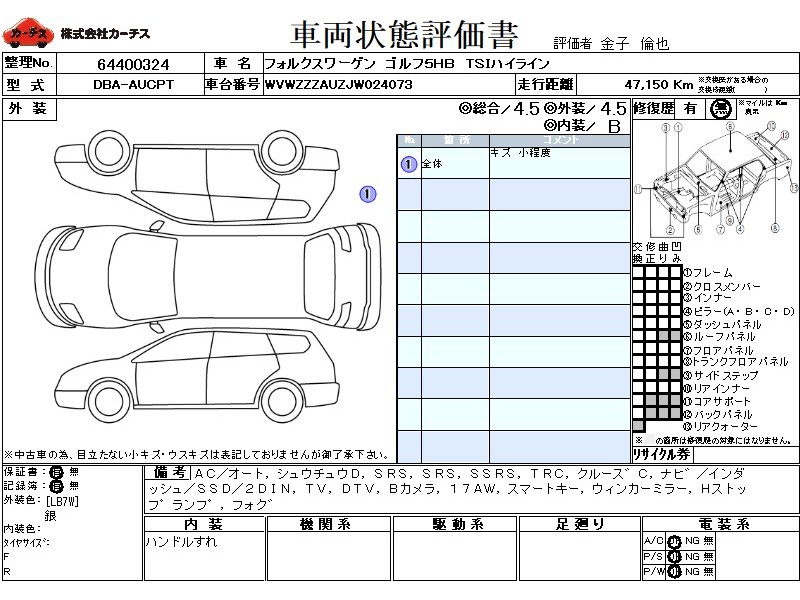 | 外装評価 | 4.5 |